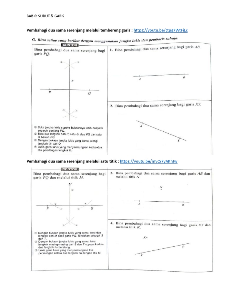 Matematik Tingkatan 2 Pembinaan Geometri Membina Pembahagi Dua Sama Serenjang Youtube